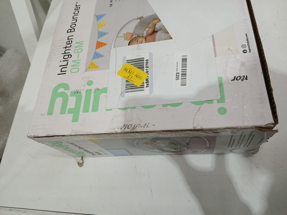 Ingenuity InLighten Baby Bouncer Seat with Light Up Toy Bar and teddy Bear Tummy Time Pillow Mat - 0m-6m - Nate