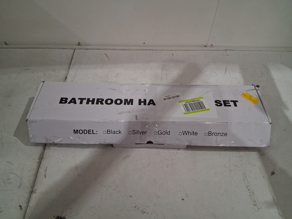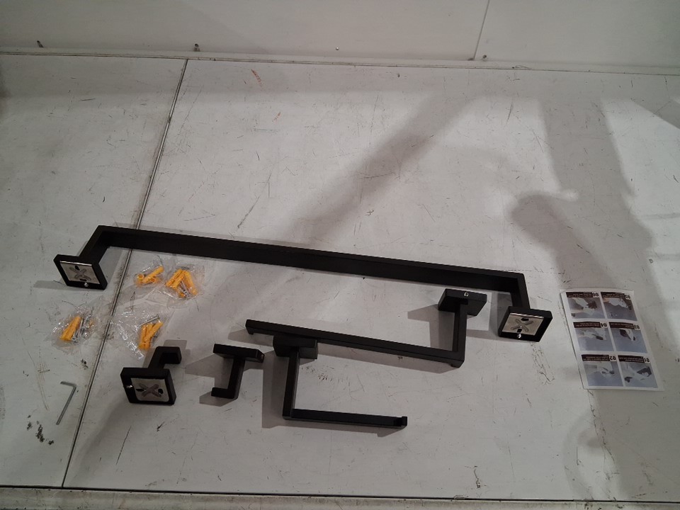 5PC Menbyci Bathroom Hardware Set Square Towel Bar Toilet Paper Holder Hand Towel Holder and 2 Towel Hooks WALL MOUNTED - BLACK