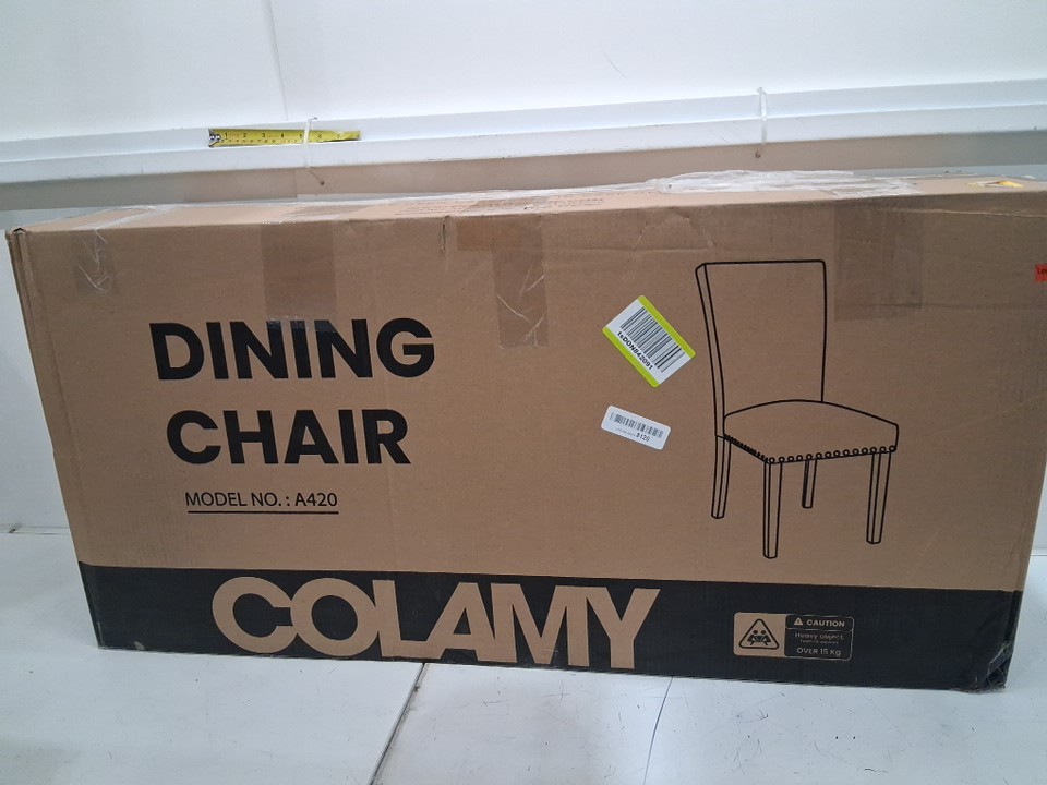 2pk COLAMY Upholstered PU LEATHER Dining Chairs WITH Nailhead Trim and Wood Legs - LIGHT GREY - (MODEL: A420)