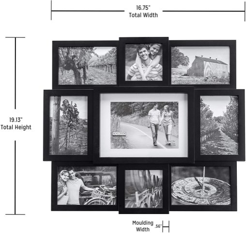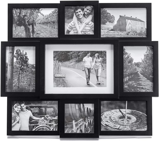 MALDEN ARRAY COLLAGE PICTURE FRAME 9-OPENING, MATTED FOR 5"x7" - BLACK (MODEL: 2132-90)