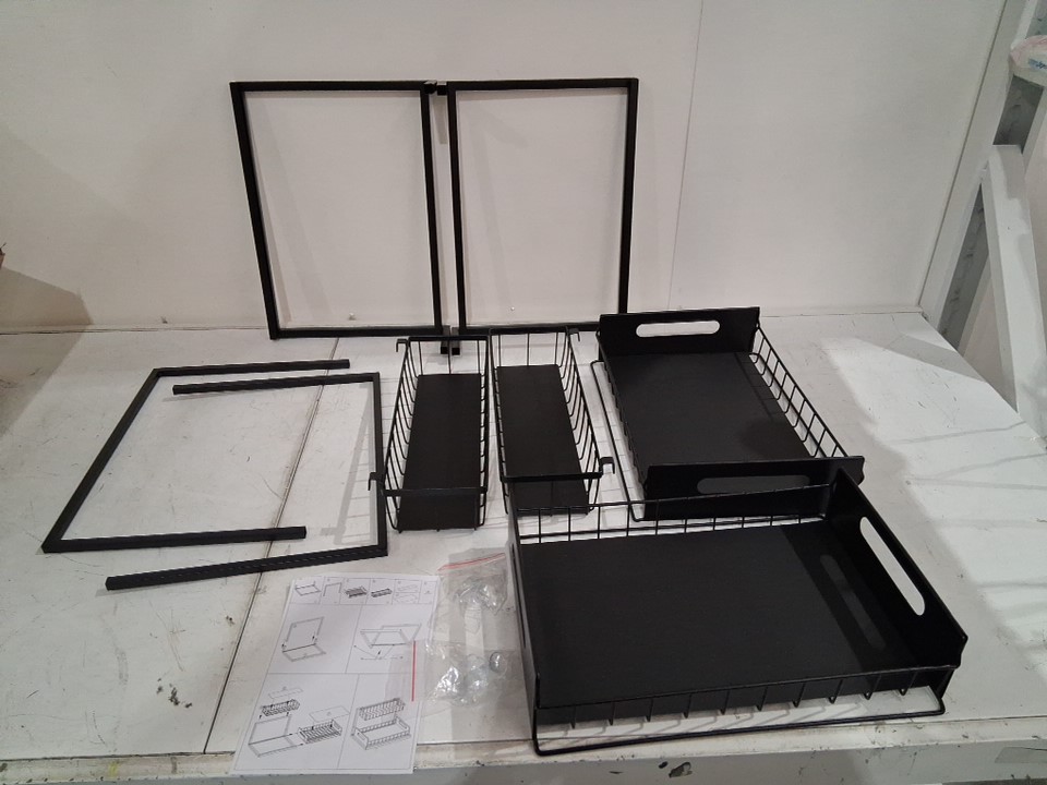 2PK YEPATER UNDER SINK STORAGE CADDY, 2-TIER RUSTPROOF CABINET ORGANIZER WITH SLIDING BASKET, 14.4" x 10.6" x 10.4" - BLACK