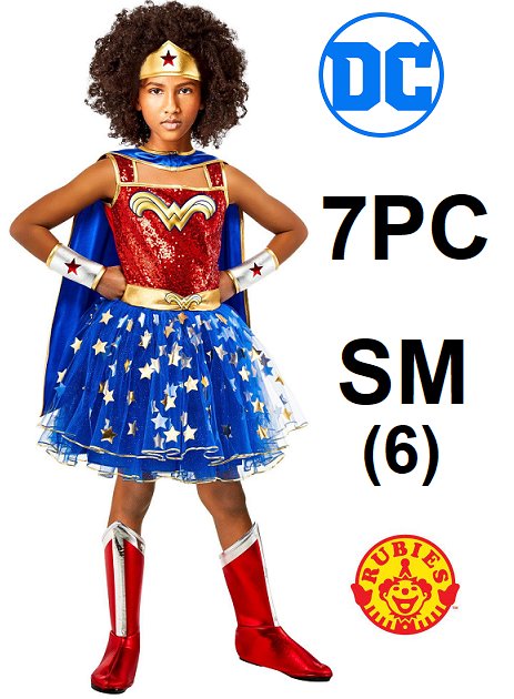 7PC kid's rubie's dc comics wonder woman costume with sequins - small (6) - red/blue (style: 1631810)