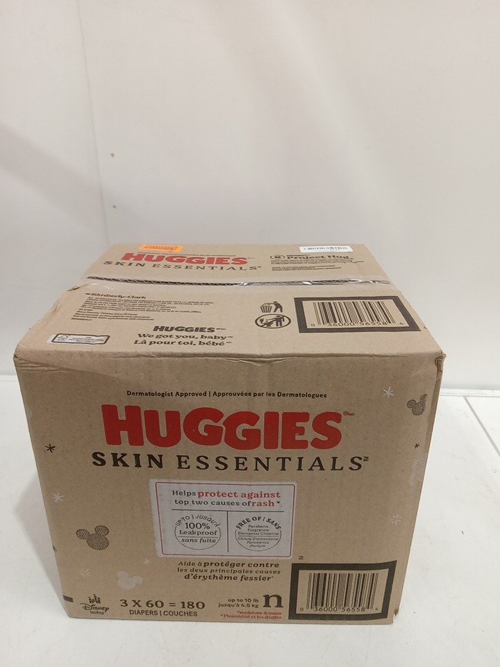 180pk huggies skin essentials 100% leakproof diapers - size newborn
