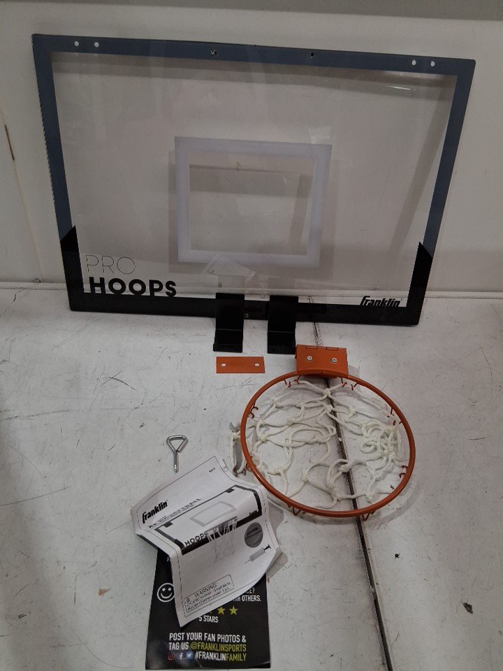 please note item is missing ball and pump scuffs are present on back board and very light wear around assembly points from previous use