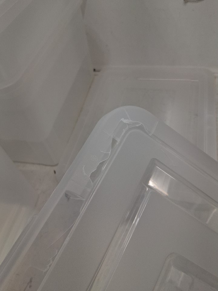 please note that 1 lid and 1 bin is damaged and has a crack on it (see photos).