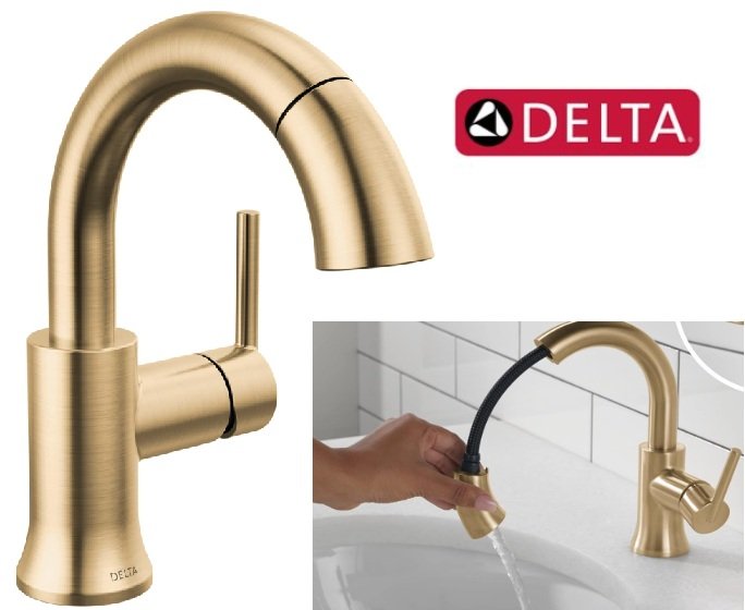 Delta Trinsic Pull Down single hole bathrrom faucet with magnetic docking and Diamond Seal Technology - champagne bronze (model: 559HAR-CZPD-DST)