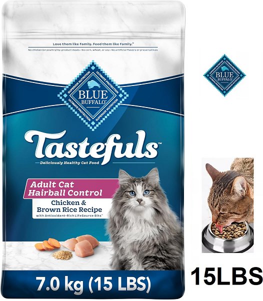Blue Buffalo Tastefuls adult cat hairball control food - chicken & brown rice -15lbs