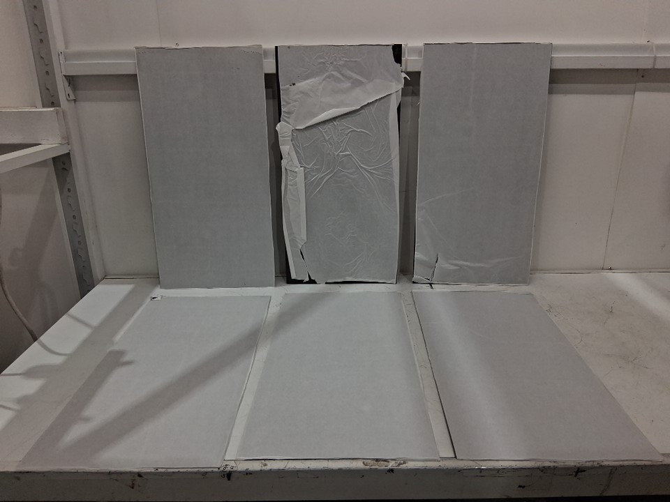 On some tiles, the back paper is coming off. One tile looks like the paper was removed and stuck back on. See photos.