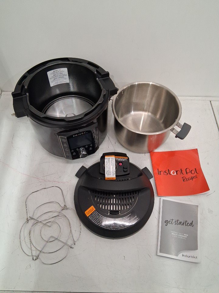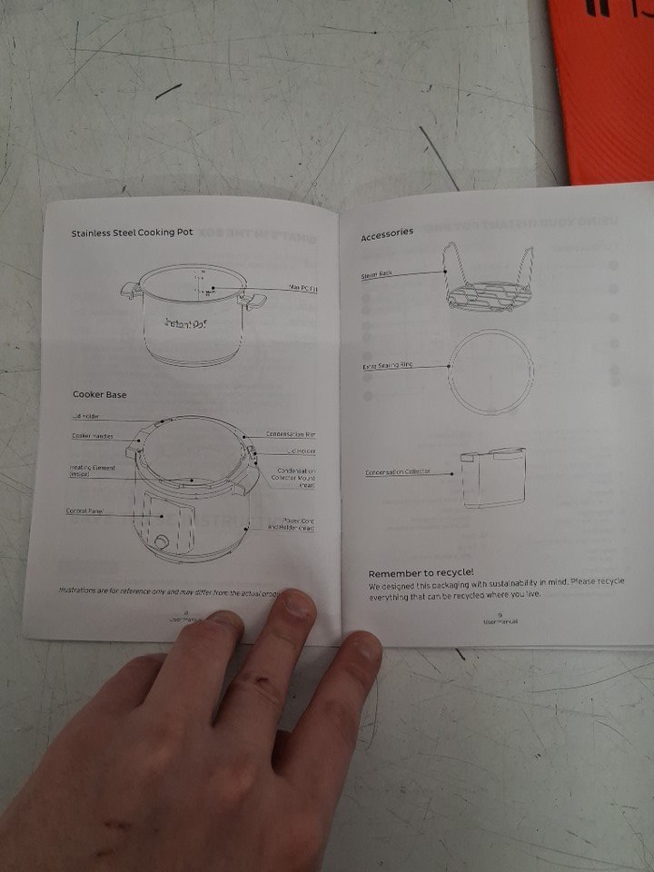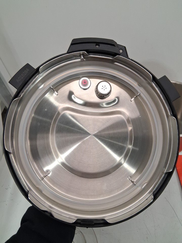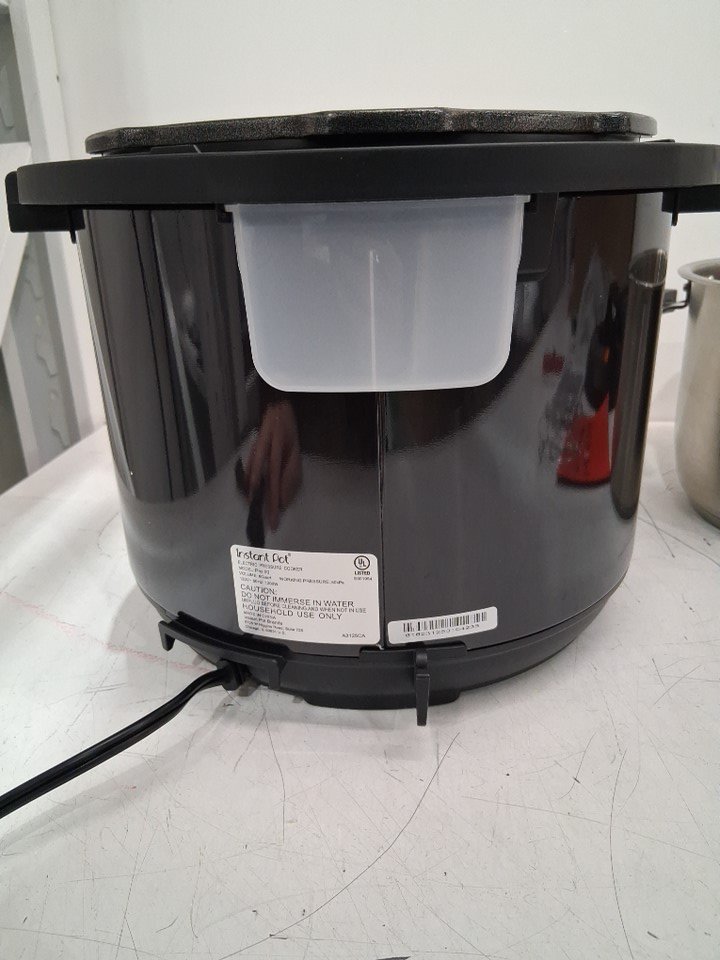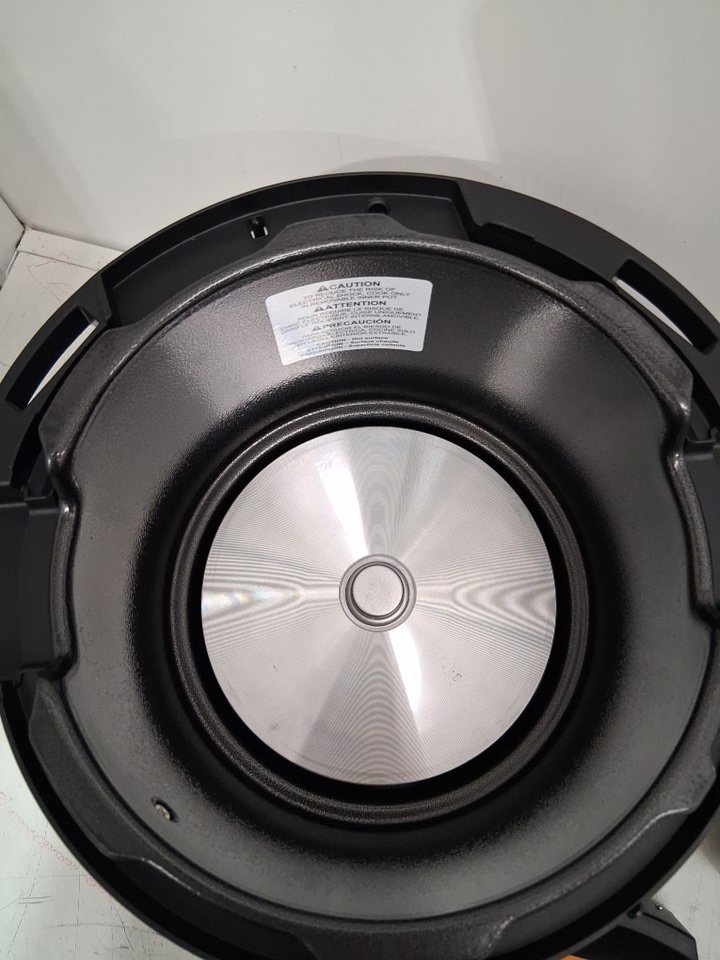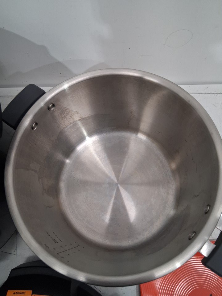 There are stains in the stainless-steel pot and a couple of use marks in the pressure cooker pot from previous use. *Please note that the item is missing the extra sealing ring*. The pot looks pretty clean for the most part and should only need a quick wash. (See photos) Tested for basic power.