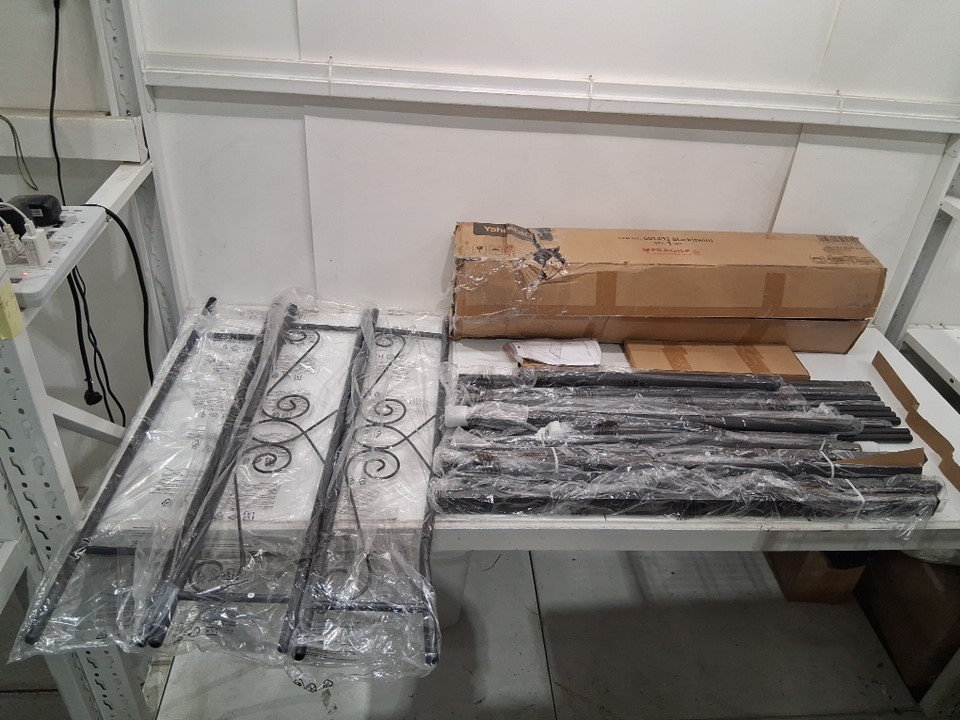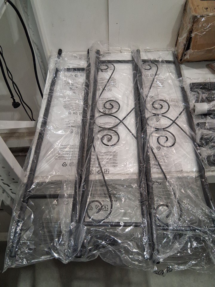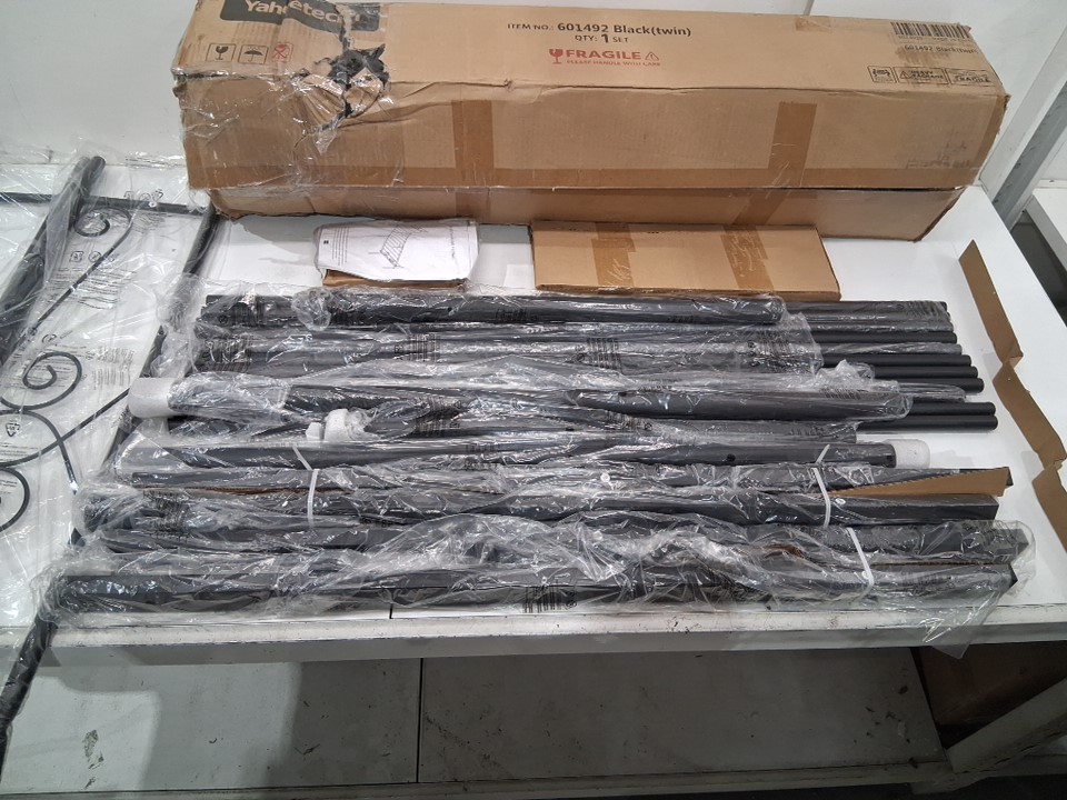 Please note that there is a bend in one of the end board pieces and may need to be bent back into place to function properly, but the bedframe otherwise appears new (see photos)