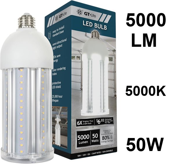 GT-Lite LED Corn Cob Bulb - 5000LM - 50W - 5000K - E26 BASE - WHITE