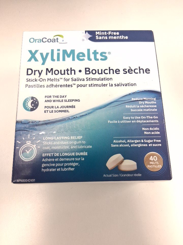 2 (40PK) OraCoat Xylimelts for Dry mouth - Stick-On melts for saliva stimulation for the day and while sleeping - mild mint flavour