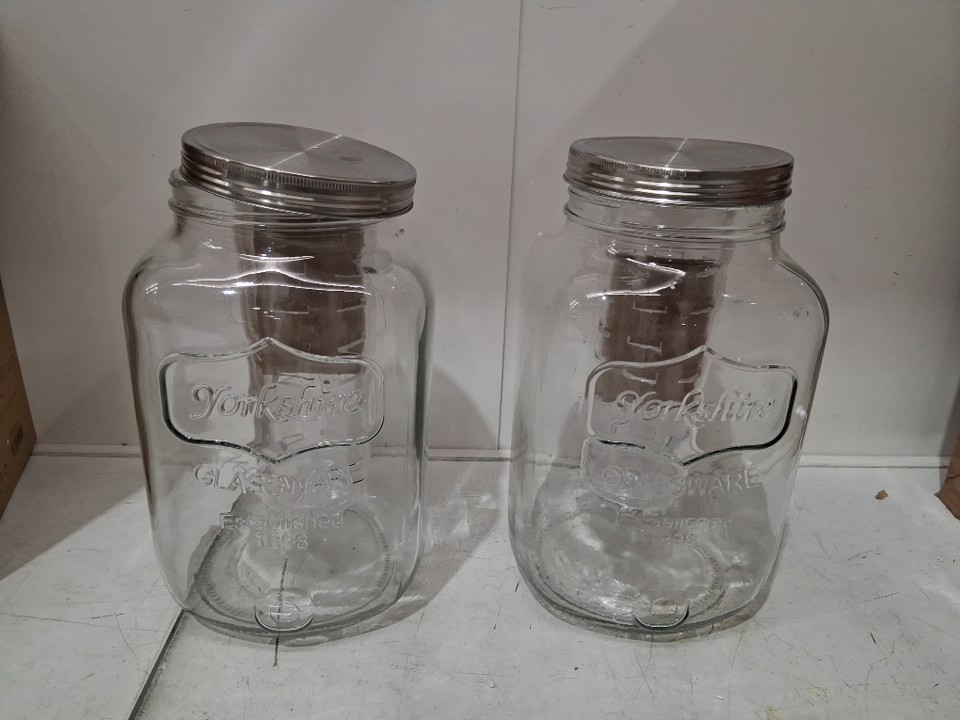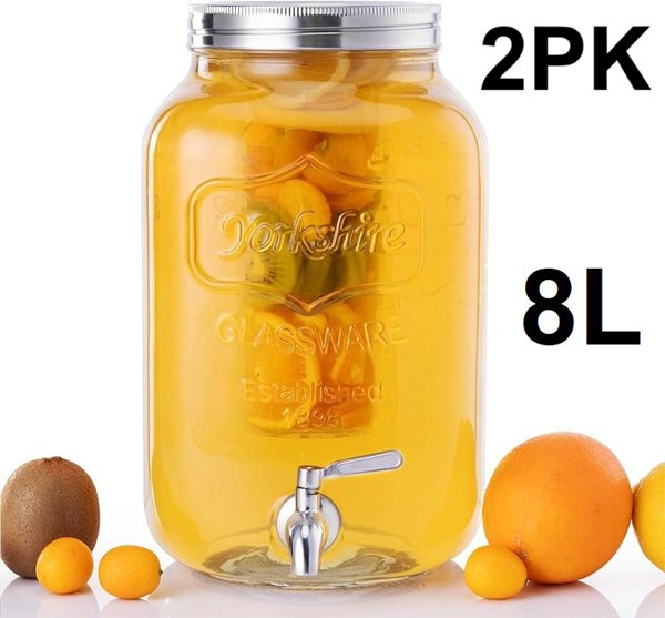 2 pk navaris glass drink dispenser with fruit infuser and ice insert - 8l capacity - clear