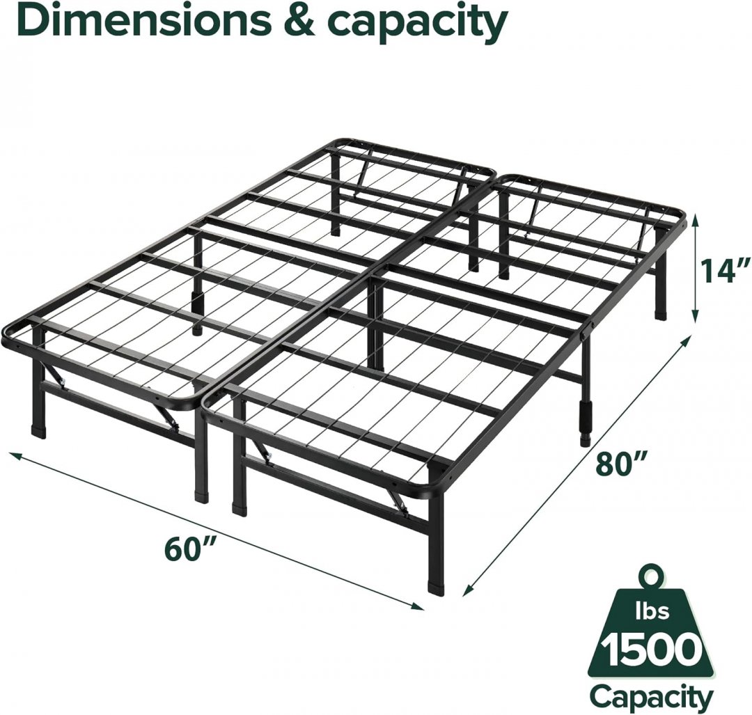 zinus smartbase steel platform bed frame - Queen - 14" - black (model: sc-sbbk-14q-fr)
