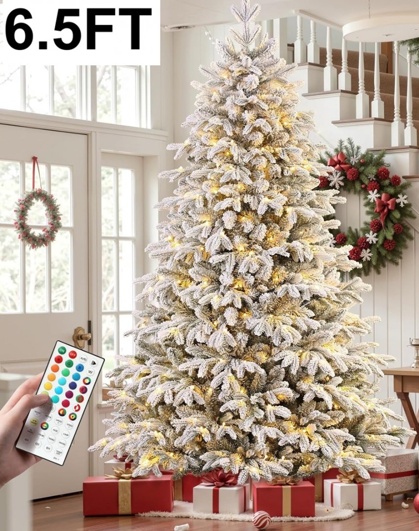 SHareconn Prelit Snow Flocked Artificial Holiday Christmas Tree - 6.5FT - white/GREEN