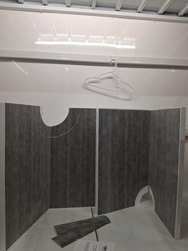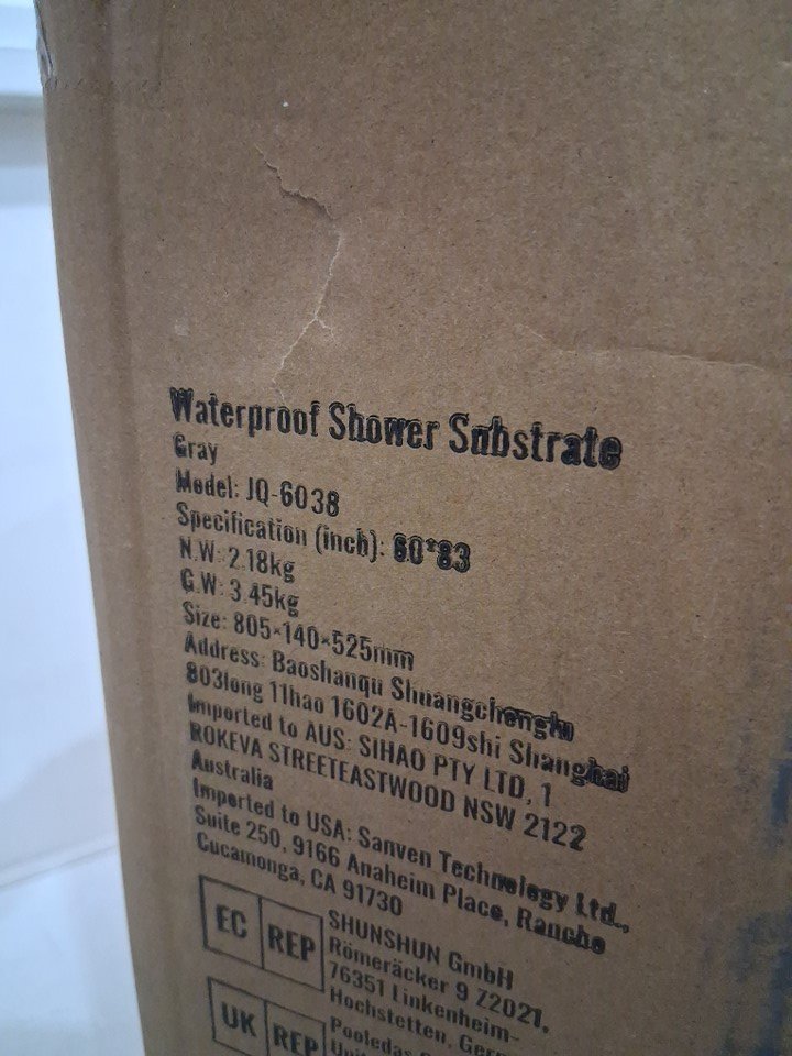 one of the shower pan is cut on the middle (shown in last 2 pictures) but not all the way through and also there are 2 patches for fixing please refer to pictures