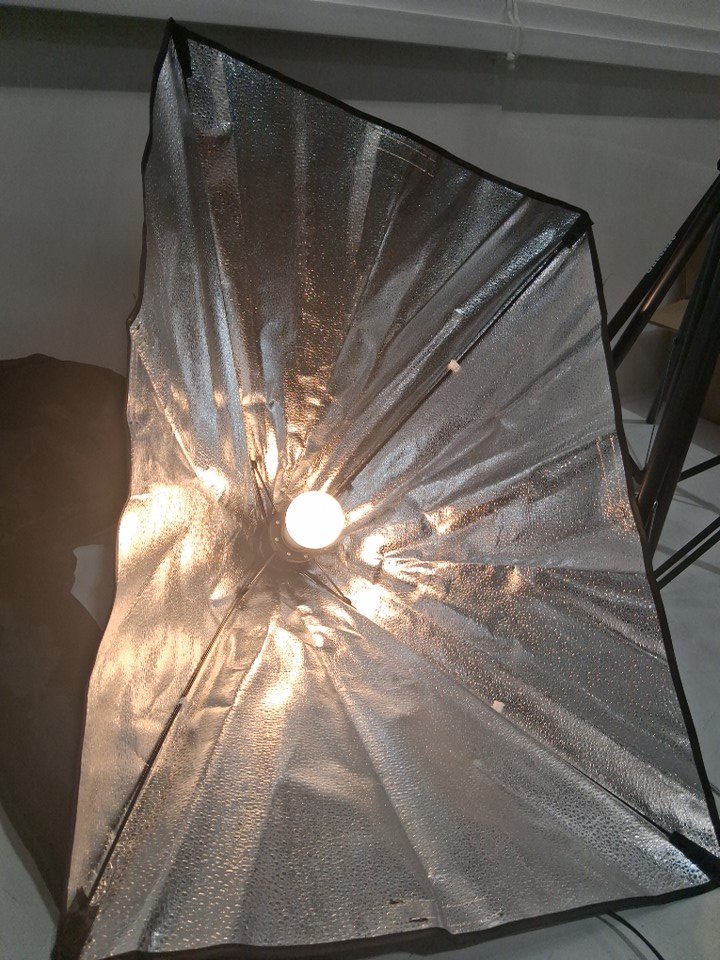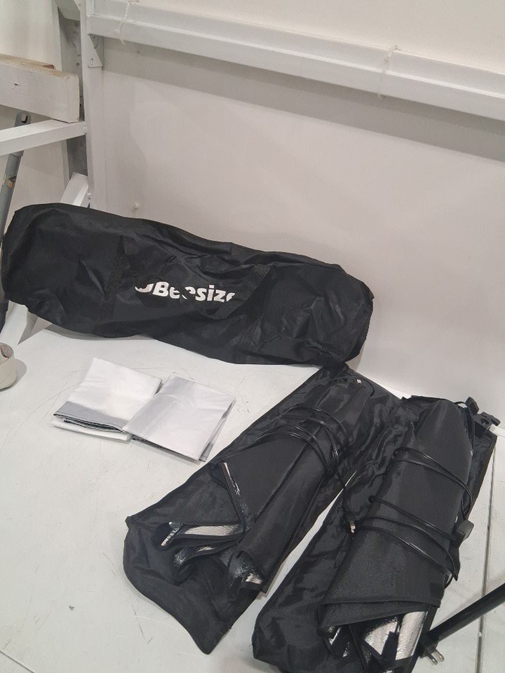 missing the bulbs and one softbox does not react to power. one softbox does work. see image details.