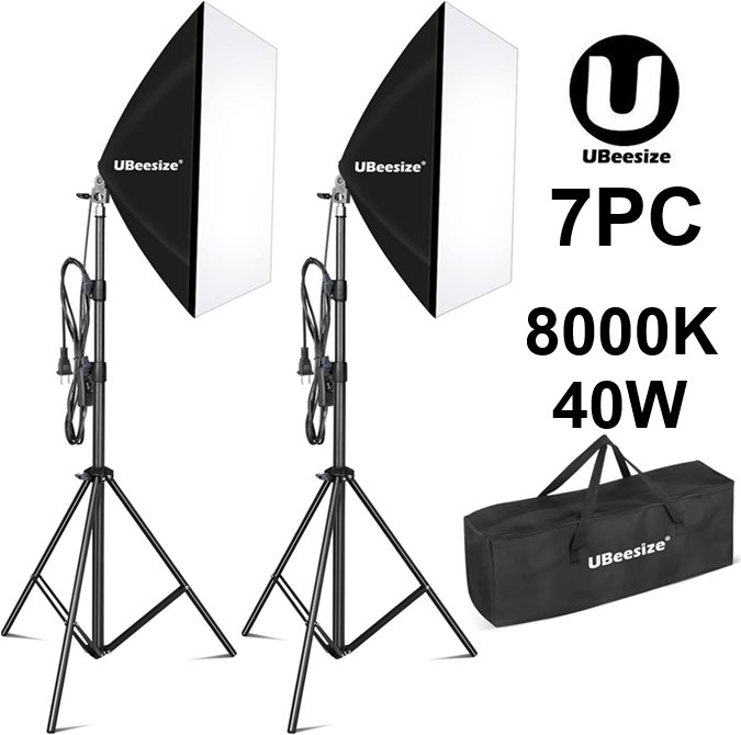 7PC UBeesize Softbox Photography Lighting Kit - 27" x 20", 40W, E27 Socket, up to 8000K Bulb - black (model: ub010)