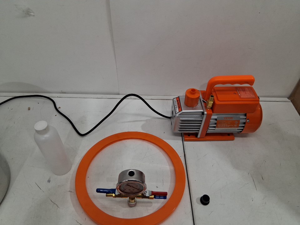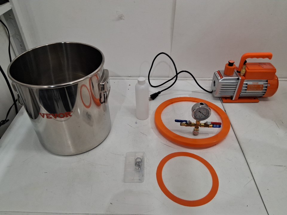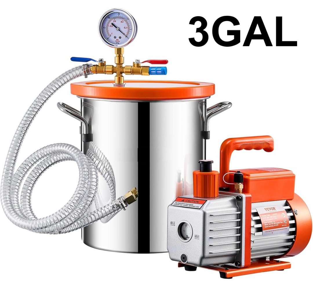 Single Stage Degassing Vacuum Chamber and 3.5 CFM Pump Kit with Hose - 3GAL - Stainless Steel (Model: VP125)