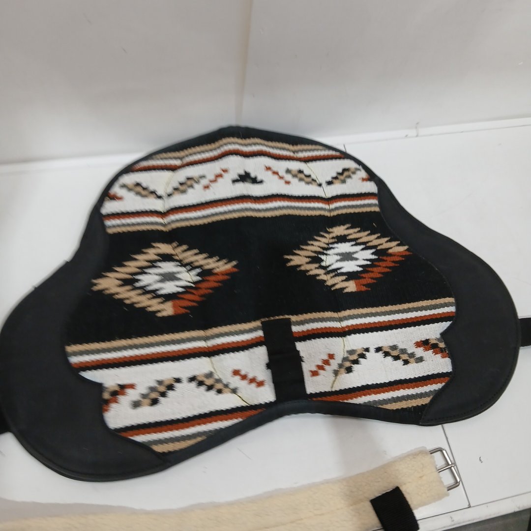 weaver equine Wool Blanket Top Bareback Horse Saddle Pad, Shock Absorbing Western Saddle Pad for Protection - 21" x 35" - Black, Tan, Multi