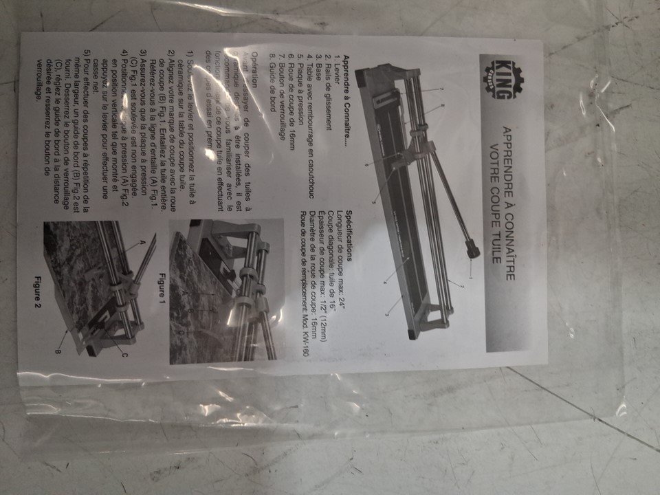 King Canada Tile Cutter Dual chrome-plated steel - 24" - SILVER/BLUE (MODEL: KC-24TC)