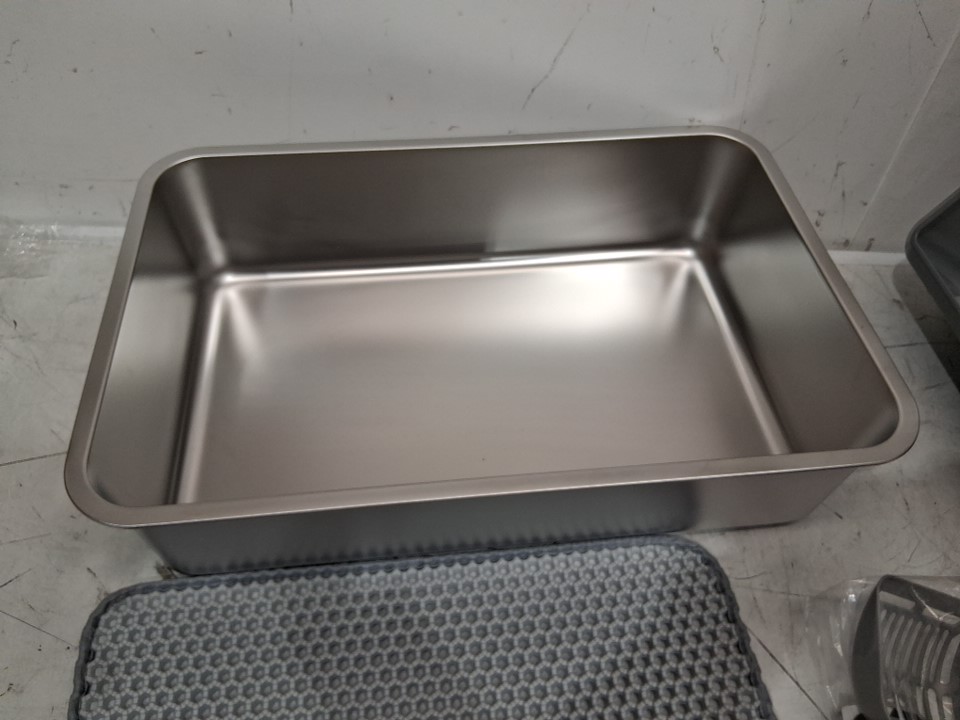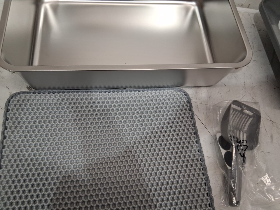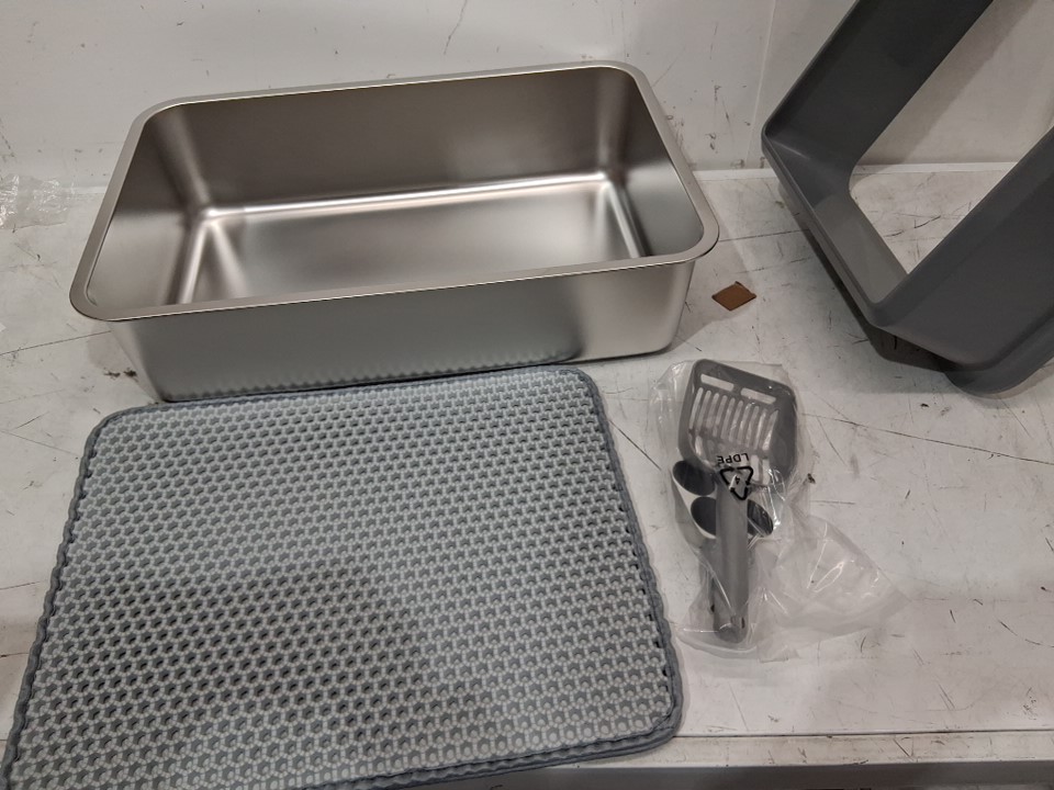 HiHloy Enclosed Stainless Steel Cat Litter Box with litter catching step and scoop - EXTRA LARGE - dark grey/silver