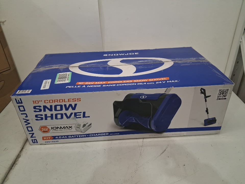 snowjoe ionmax cordless snow shovel with battery and charger- 10"W, 24v 4.0sh battery- blue (model: 24v-ss10)