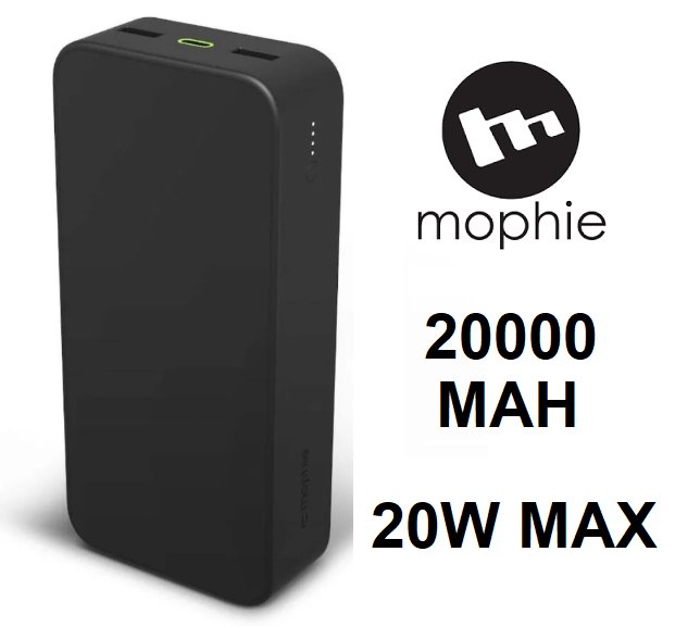 Mophie PowerStation XL High Capacity Power Bank with 2 USB-A Ports, and USB-C Port - 20000mAh - 20W Max - Black (Model: PS-2023-20K)