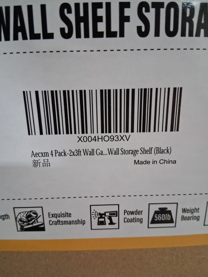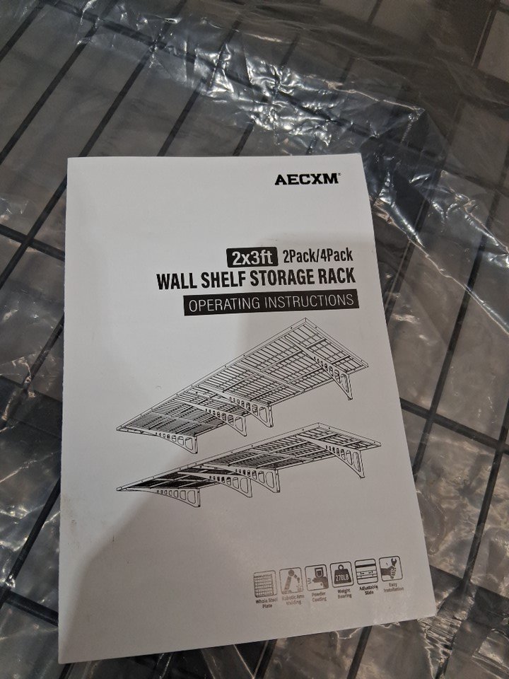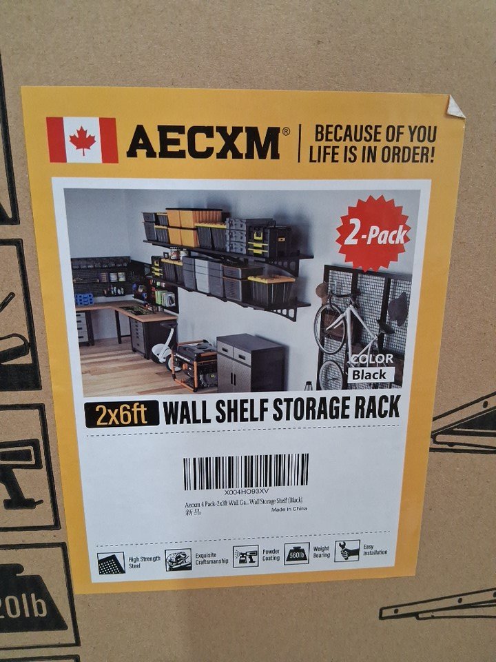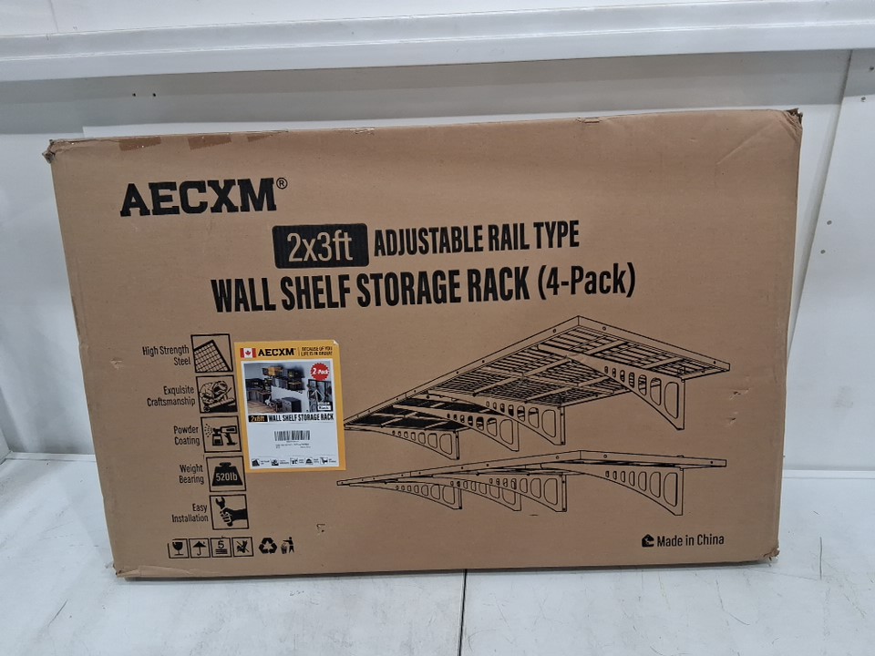 4PK Aecxm Heavy Duty Garage Wall Storage Shelf - 2FT x 3FT - Black - (Model: ‎AX-WGR-2-3)