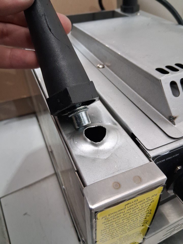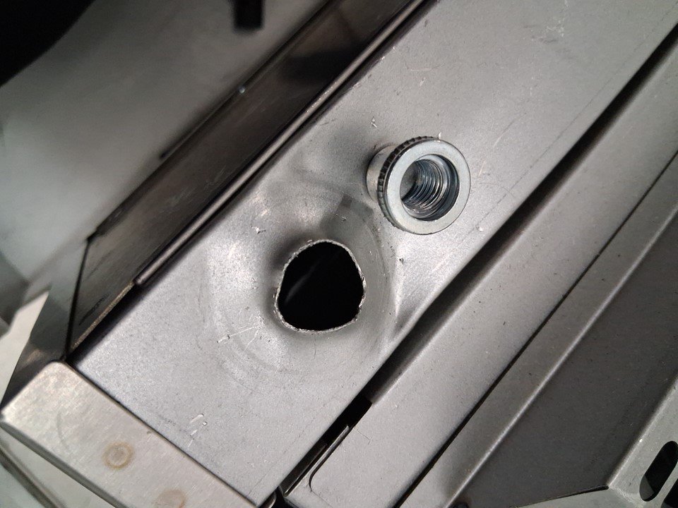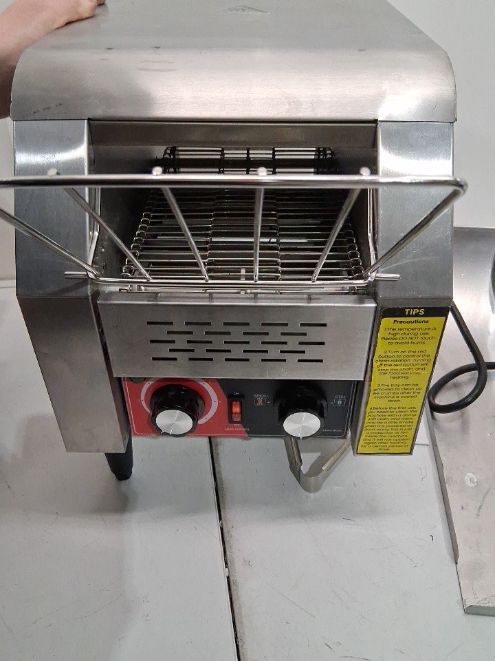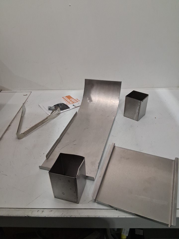 The front right leg is broken off- the mounting point has come out of the unit. This could be fixed with the right tools or the leg could be mounted directly to the unit as there is a height adjustment on each leg. Some light dirt/crumbs from prior use - one of the tool trays is slightly bent as well- should not effect function