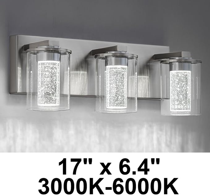 SineRise MODERN STYLE 3-Light Vanity Light - 17" X 6.4" - Brushed Nickel (MODEL: ‎67afe290-85d8-4952-80d0-f62a23d38ee9)