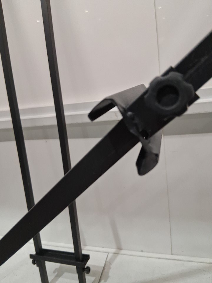 item has some bent parts in stand frame but can be fixed, part of the stand has some damage but still works ( see photos)