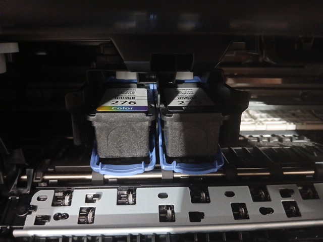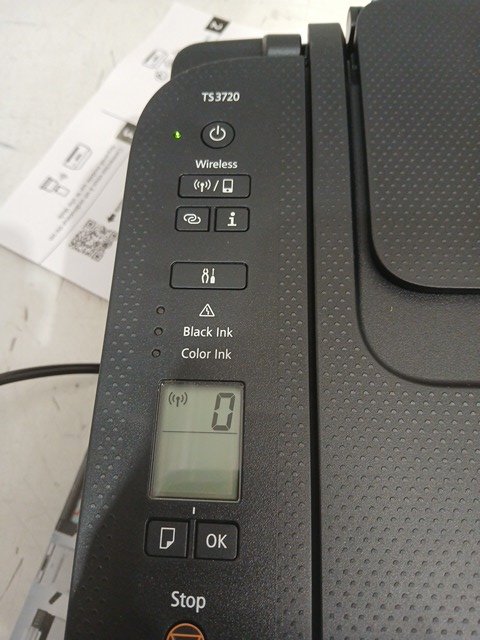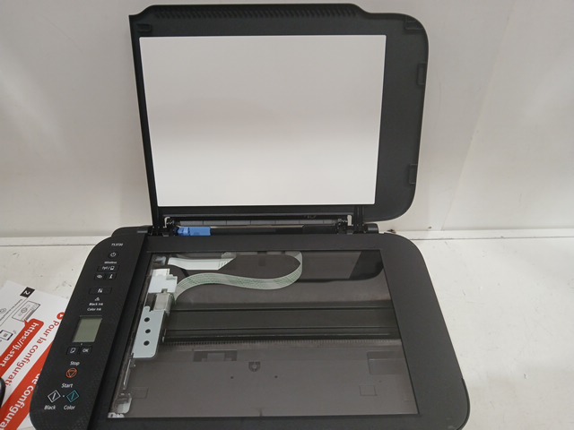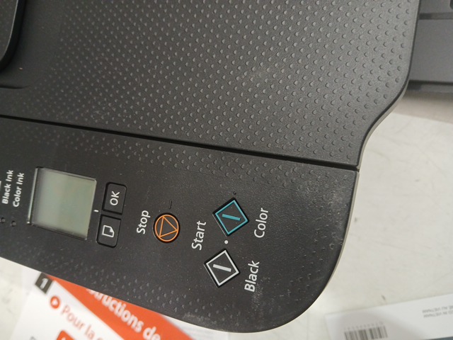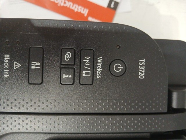 The ink was pre-installed and there are scuff marks on the product. Tested for power.