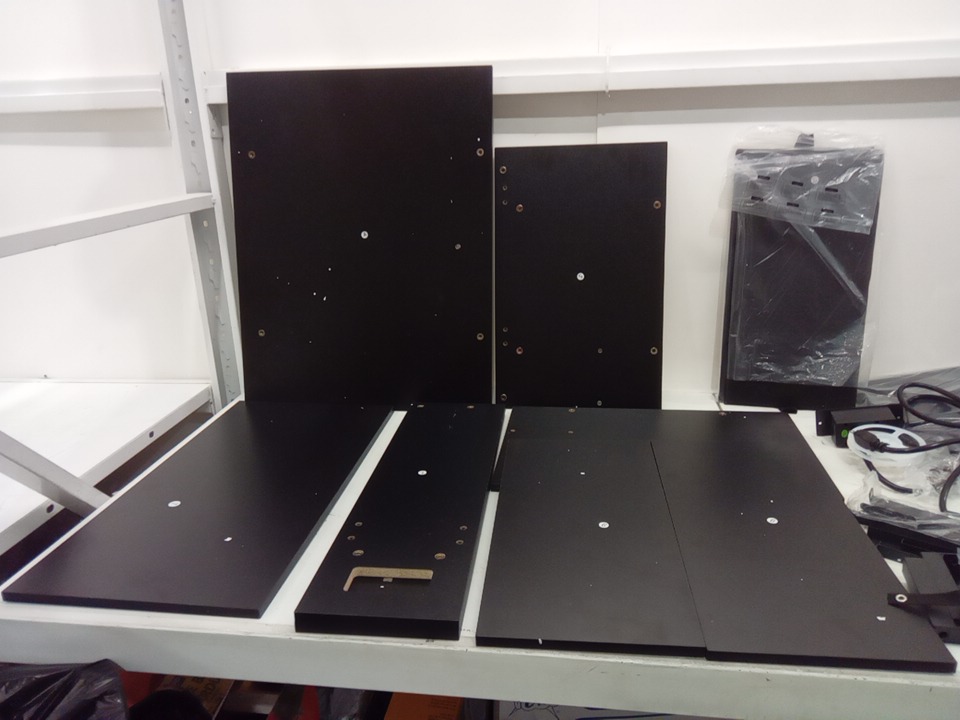 note that there may be missing hardware - and two of the wood pieces are stuck together from some residue. see photos. need to replace the led lights.