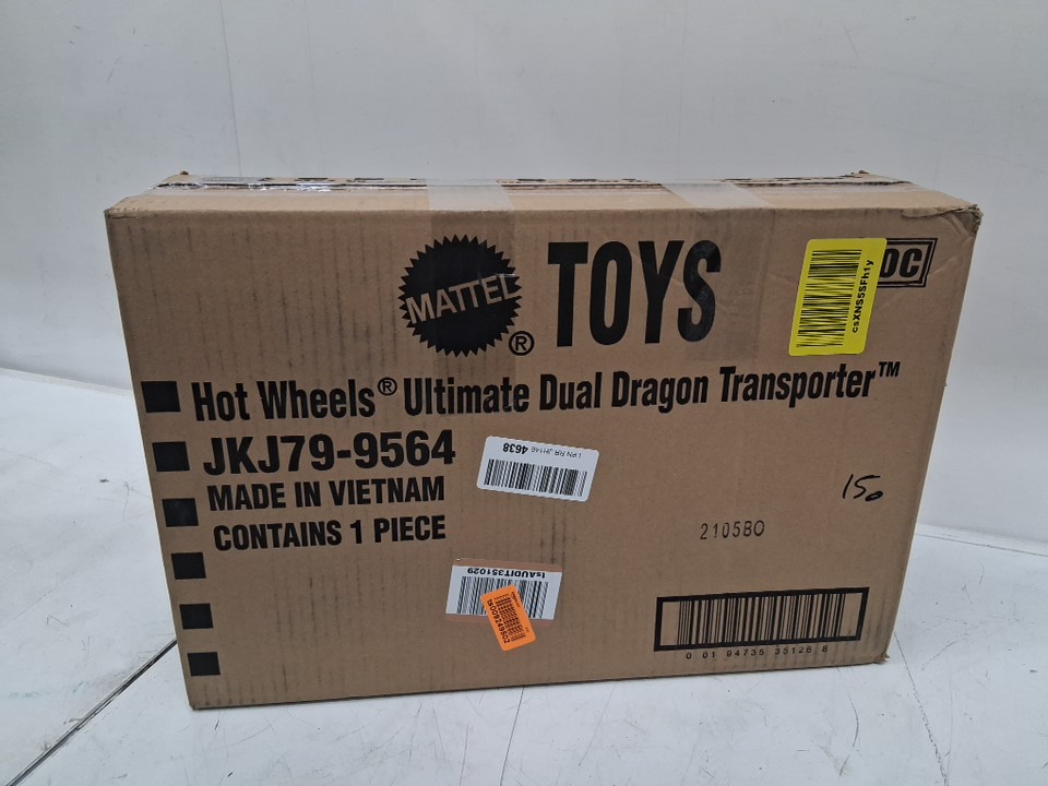 4pc Hot Wheels City Toy Car Track Set Ultimate Dual Dragon Transporter with 2 Die-Cast Cars - fits 20 cars - (model: jkj79-9564)