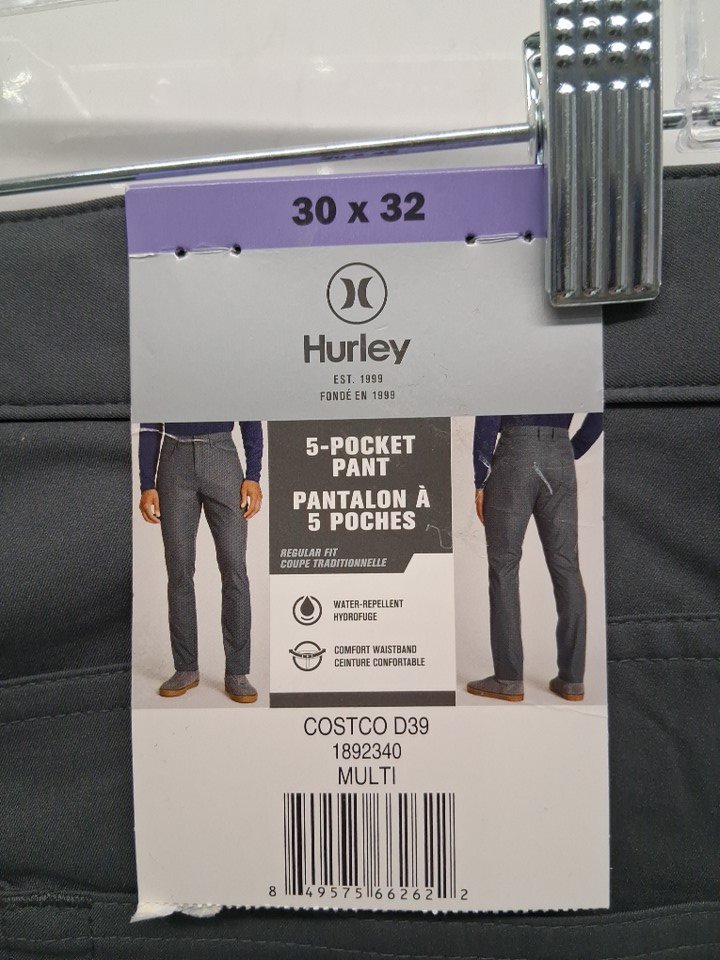 MENS HURLEY 5 POCKET STRETCH PANT - 30W X 32L - DARK GREY (STYLE: 1892340)