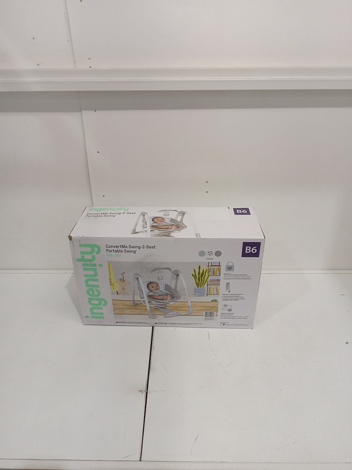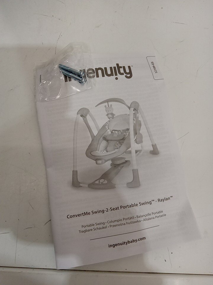 Ingenuity 2-in-1 convertme compact portable baby swing & seat with vibrations & nature sounds - battery powered - 20lbs max- raylan theme/grey (model: ‎12189)