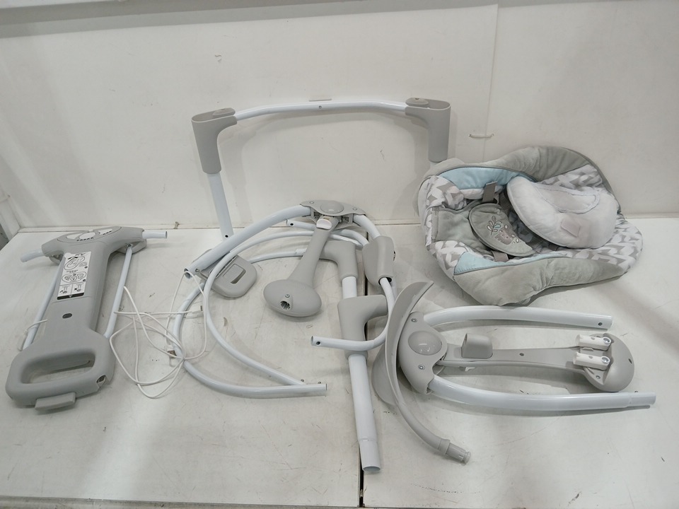 Ingenuity 2-in-1 convertme compact portable baby swing & seat with vibrations & nature sounds - battery powered - 20lbs max- raylan theme/grey (model: ‎12189)