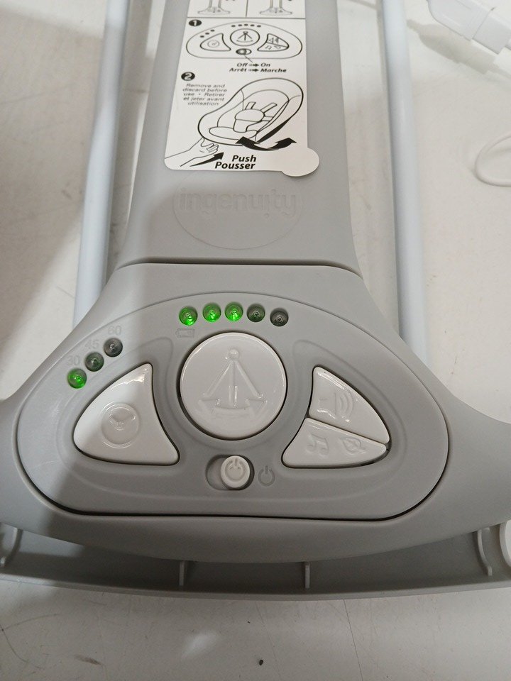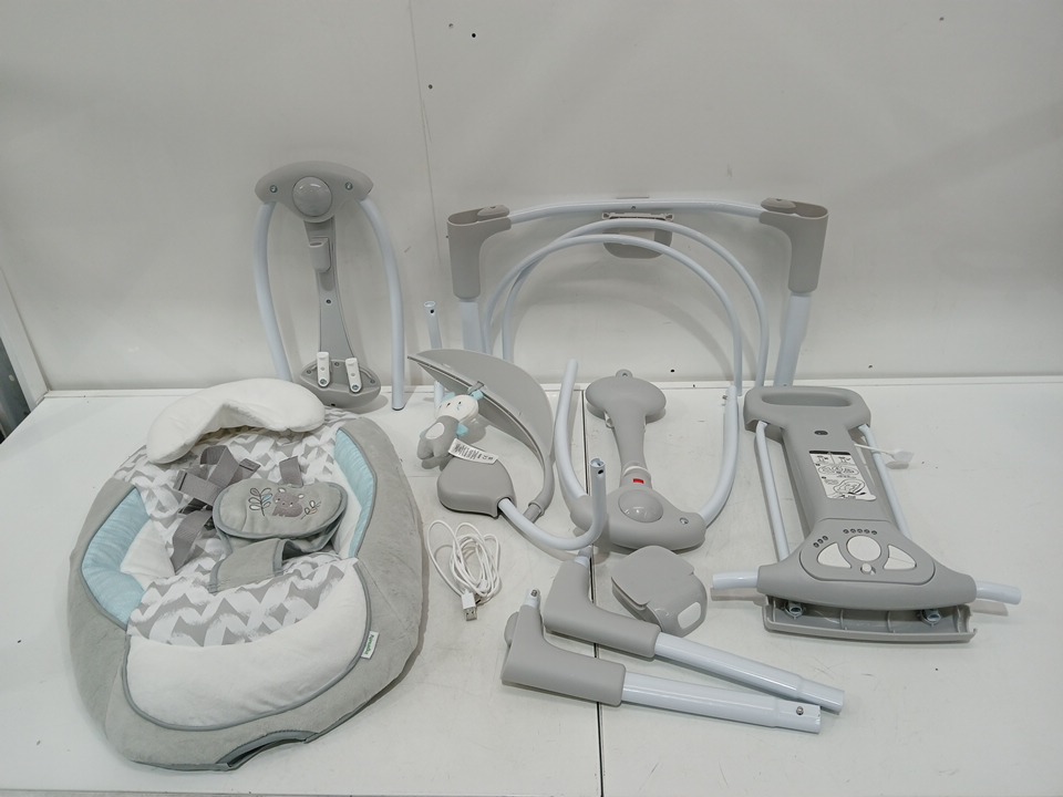 Ingenuity 2-in-1 convertme compact portable baby swing & seat with vibrations & nature sounds - battery powered - 20lbs max- raylan theme/grey (model: ‎12189)