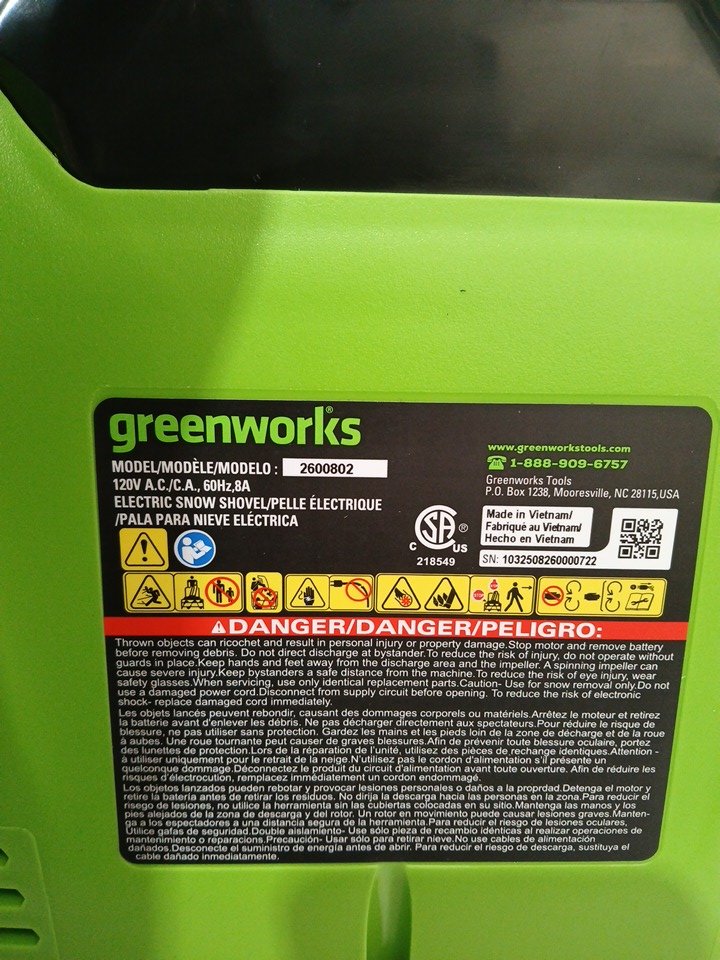 greenworks pro corded electric snow shovel - 8amp - 12" - GREEN (MODEL: gbss08000/2600802)