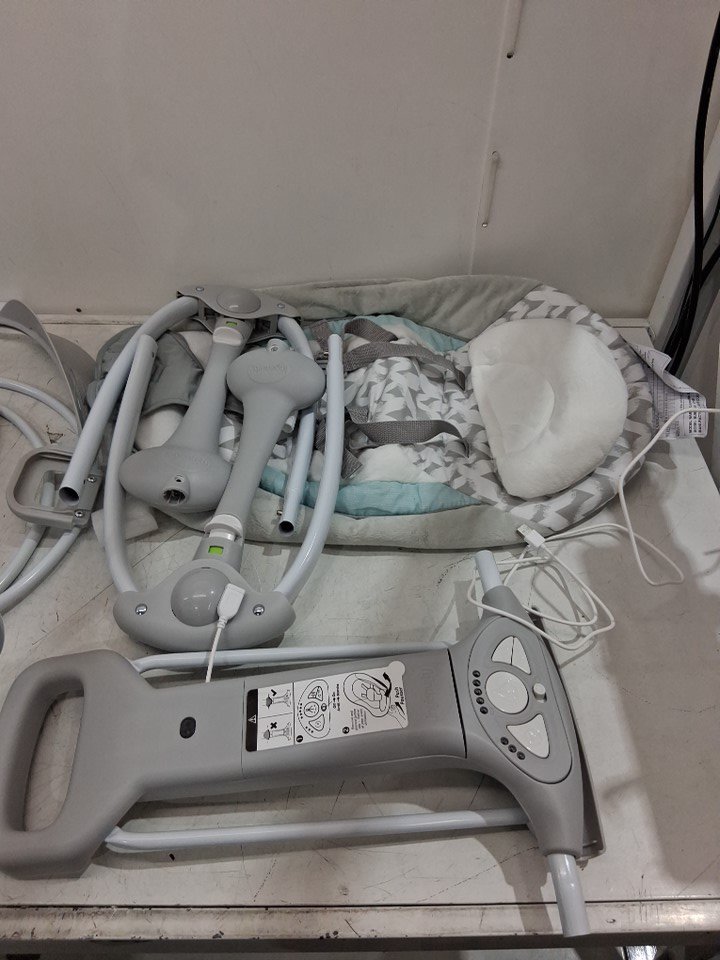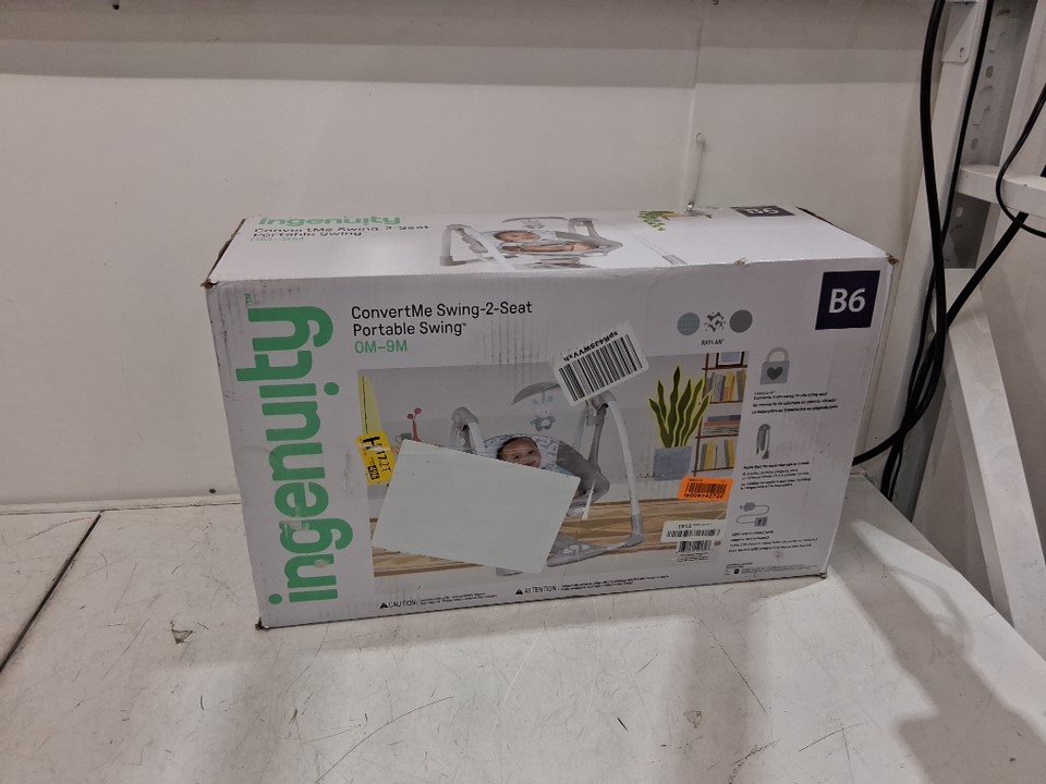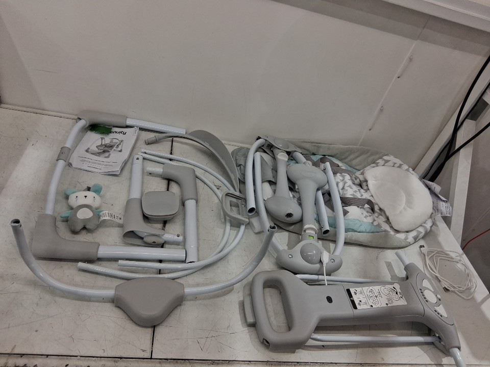 Ingenuity 2-in-1 convertme compact portable baby swing & seat with vibrations & nature sounds - battery powered - 20lbs max- raylan theme/grey (model: ‎12189)
