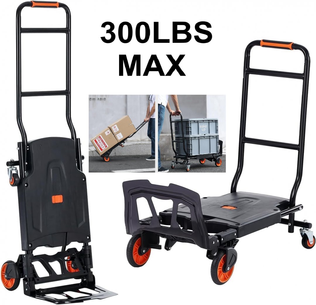 2 in 1 Aluminum Folding Hand Truck/Dolly Cart - 300 Lbs Capacity - BLACK (MODEL:‎DGN-300-2)