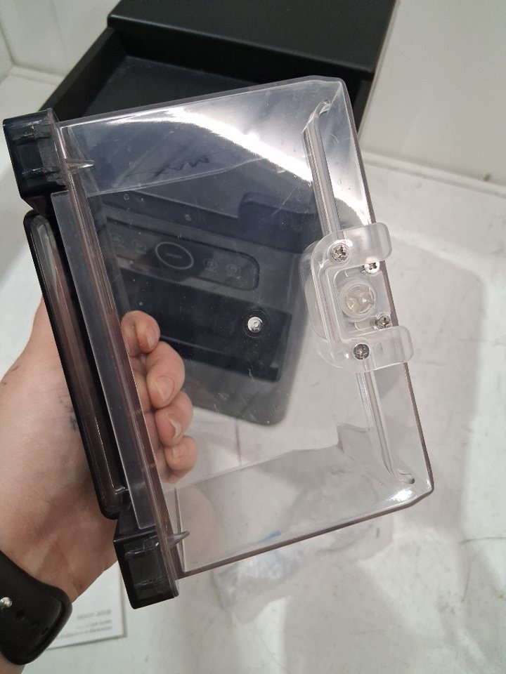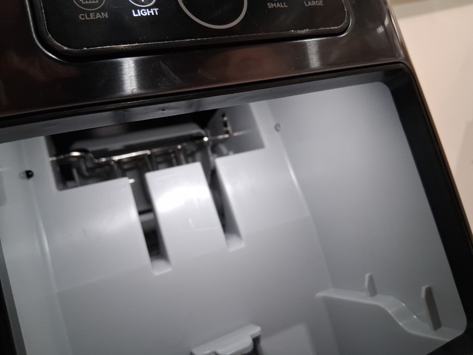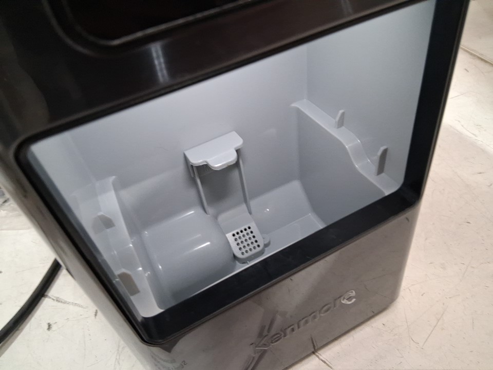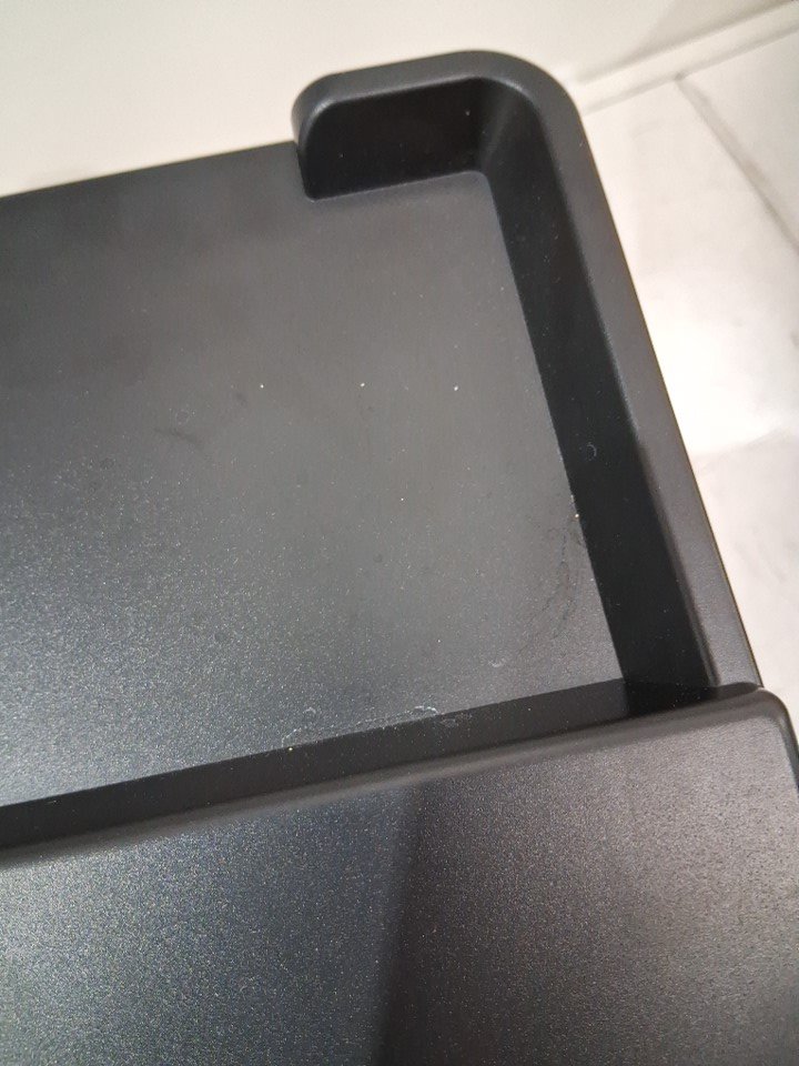 item has some very light water marks in catch tray and some light hard water stains on the top from previous light use