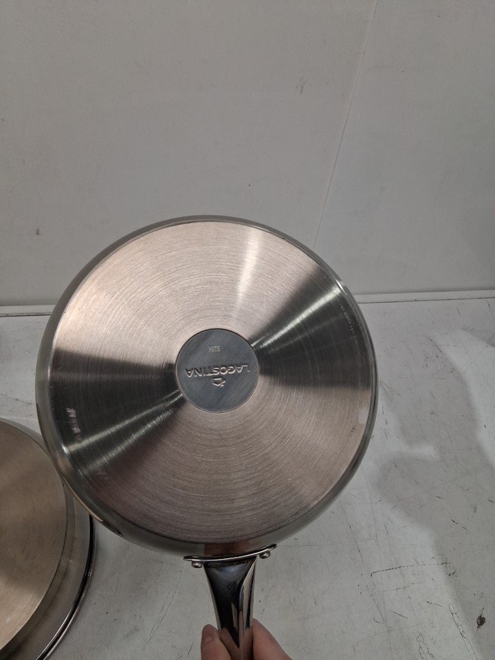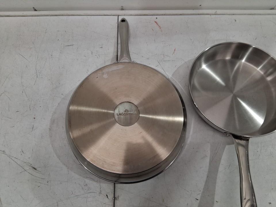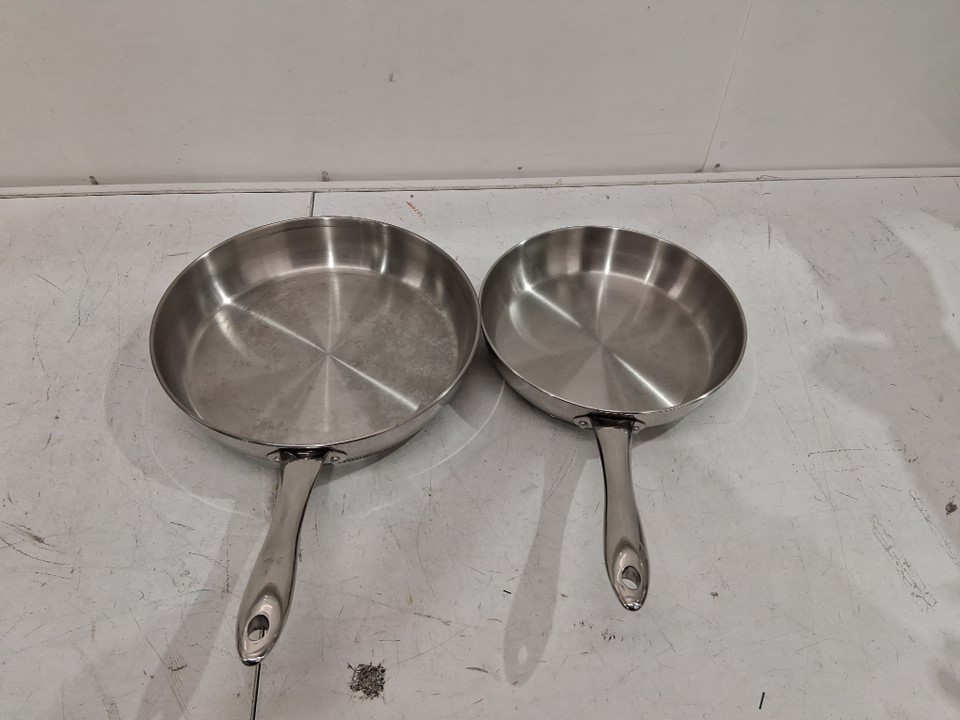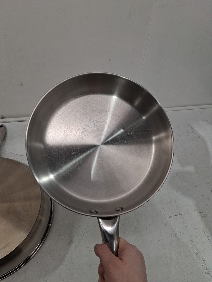 Both pans have some light residue along with some heat rings indicating previous use (See photos)