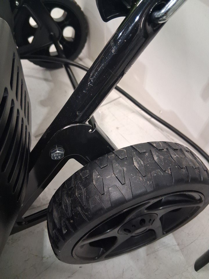 Liquid residue/dirt on wheels from previous use, tested for basic power