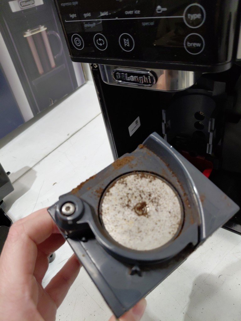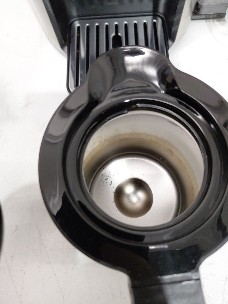 item has some coffee grinds from previous use, item will need to be thoroughly cleaned before use (see photos) tested for power only
