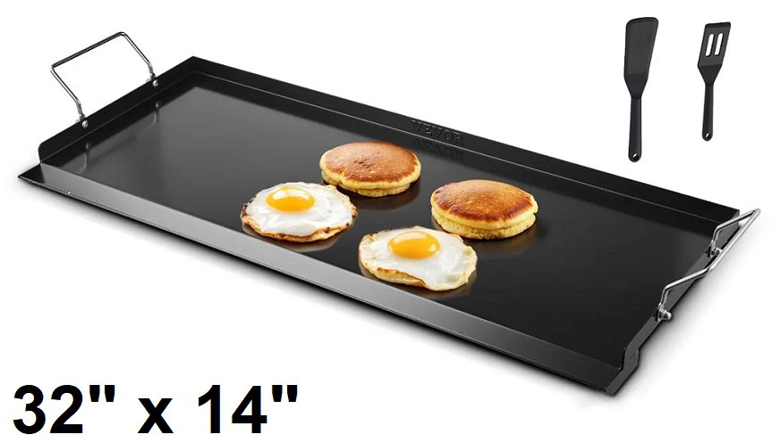 Carbon Steel Griddle Universal Flat Top Rectangular Plate - 32" x 14" - Black (Model: hh-spn007)