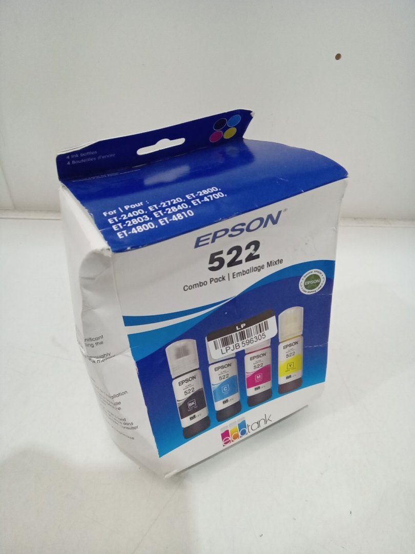 4PC Epson 522 Combo Pack Ink Refill Bottles for Select EcoTank Printers - 65mL Each - Black, Cyan, Magenta, Yellow (Model: T522120-BCS)