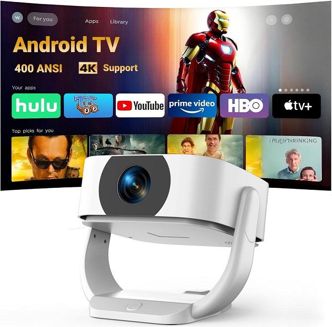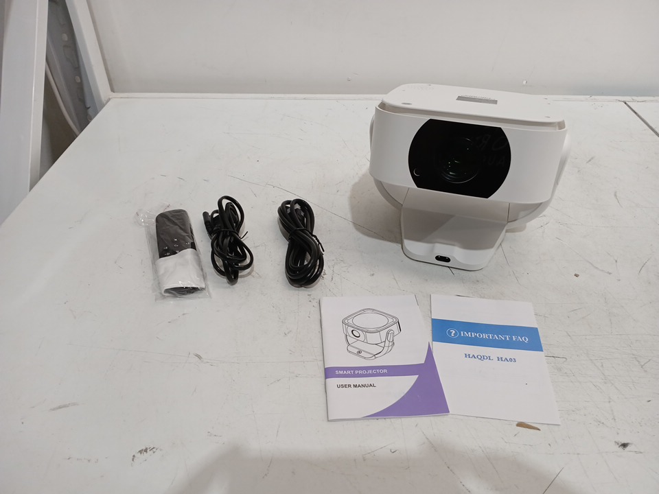 haqdl 4k support projector with native 1080p, electric focus, auto keystone, wifi6 & bluetooth - 360°Rotation/Built-in Apps - white (model: haqdlha03)