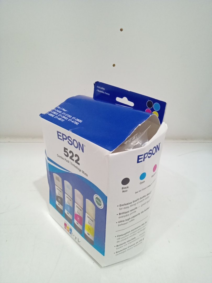 4PC Epson 522 Combo Pack Ink Refill Bottles for Select EcoTank Printers - 65mL Each - Black, Cyan, Magenta, Yellow (Model: T522120-BCS)